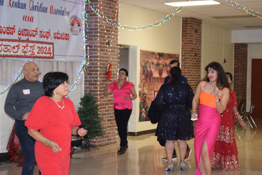 Chicago, December 18, 2024: The Mangalorean Konkan Christian Association celebrated its 20th annual Christmas Celebration at St. Hubert’s Church Hall at Hoffman Estates, Illinois. In Konkani language, it is popularly called Natal Fest, which celebrates the birth of Jesus Christ. Christmas is celebrated by all the Christians worldwide on December 25th. There was a general Holy Eucharist, where the MKCA members and guests attended. The first and second readings at the Mass were read by the members of MKCA, Dominick Carrabotta and Savio Pais.