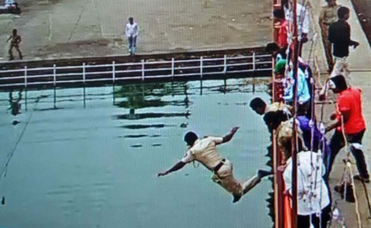 Nashik, Sep 15, 2015: A devotee attending the Kumbh Mela in Nashik in Maharashtra tried to kill himself by jumping off a bridge into the waters of the River Godavari below.