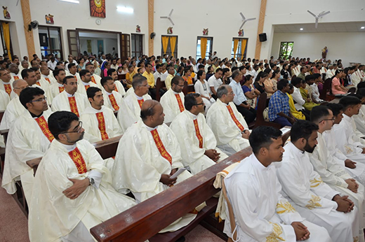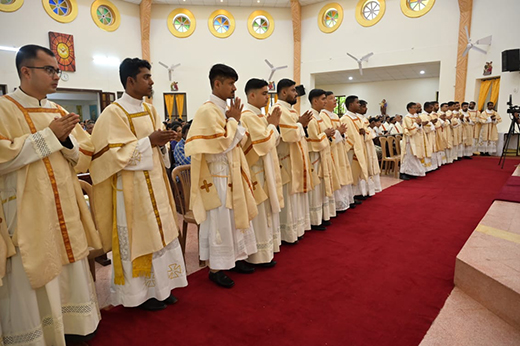 Following the Mass, the Rector extended his gratitude to the Bishop and all the priests and brothers who contributed to the success of the ceremony. Deacon Jeevan Lobo, speaking on behalf of the newly ordained, expressed heartfelt thanks to all their formators for their guidance throughout their formation. A celebratory meal was then shared by all attendees.