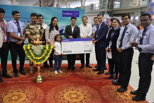 Young Nandika V, the first passenger to check-in on this inaugural flight, with her mother, was the cynosure of all eyes at the launch event. Nandika not only got the opportunity to light the ceremonial lamp with the Airport and Airline leadership team, but also receive the first boarding pass and a goody bag from the Airline. She joined the airline staff in cutting a ceremonial cake. Flight 6E 1442, skippered by Captain Viqar Yaseen, departed for Abu Dhabi at 9.40pm with 180 passengers aboard.