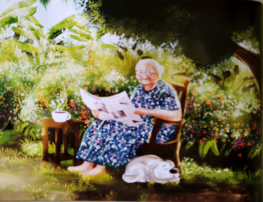 Her individual hand painted illustrations on the pages of this book is a study in deep reality and true expression - precise, tastefully colorful, correct in detail and heart touching in every sense on the mind young or old in a graceful manner. The illustrations are fittingly simple and truly genuine, most will recall scenes as children and even smell the scents of the scenarios. Illustrations detailed and real are invaluable treasures conveying a thousand words and emotions!