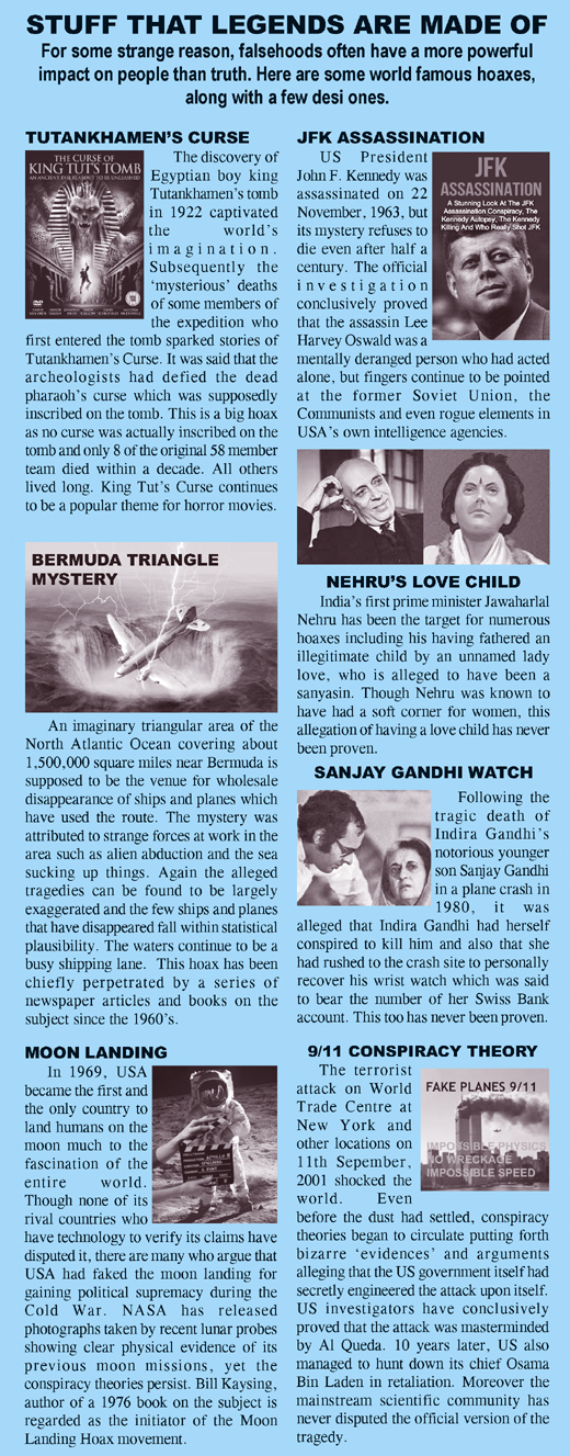 Distortion of History / Past Entities: History is largely based on expert interpretation of evidence. Hence it gives scope for distortion and serves as a fertile territory for hoaxsters.