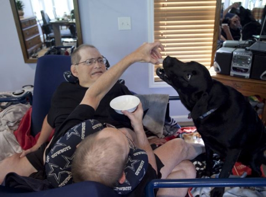Visitor: Donnie, front, and Ronnie feed their dog, Mickey, inside their Beavercreek, Ohio home